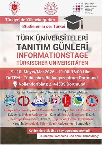 Die Alanya Alaaddin Keykubat Universität freut sich, ihre Teilnahme an den Informationstagen Türkischer Universitäten (Informationstage) anzukündigen, die am 9.–10. Mai 2026 in Dortmund stattfinden werden.