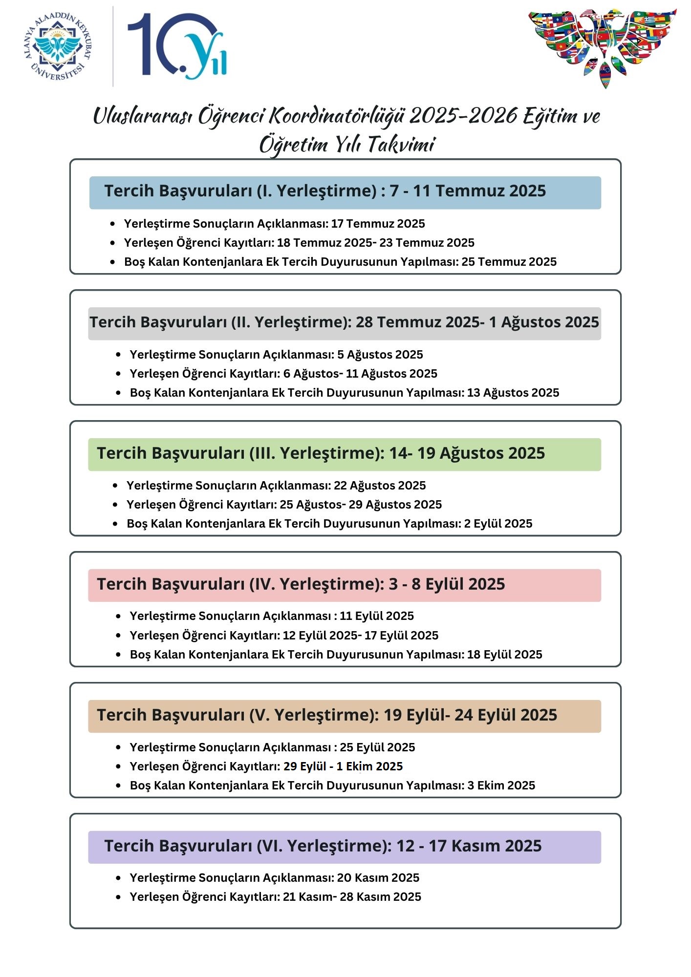 2025- 2026 uluslararası öğrenci alımlarında 5. yerleştirme ile yerleşecek öğrencilerin kayıt tarihlerinde güncelleme yapılmıştır.